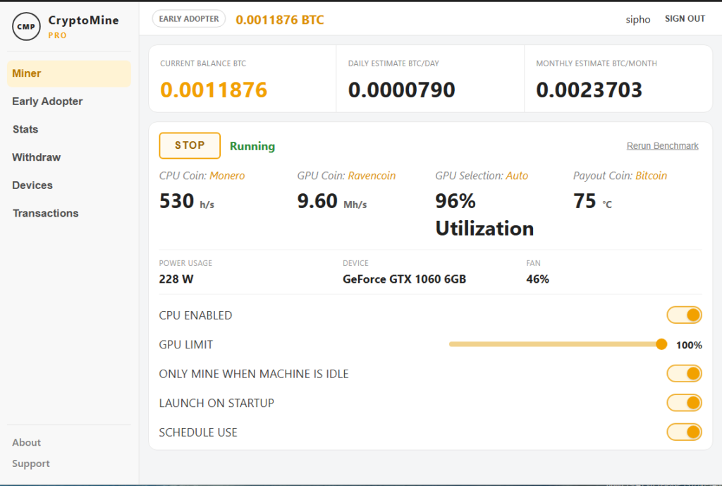 CryptoMine Pro is a modern desktop cryptocurrency mining for Windows PCs.