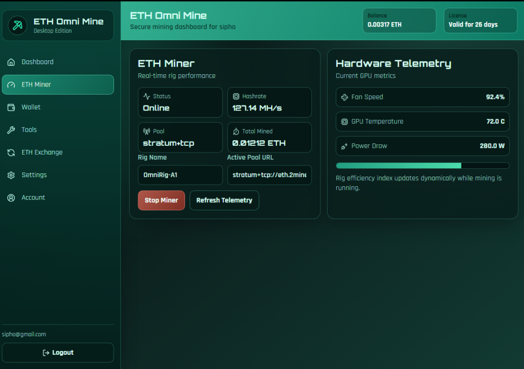 ETH Omni Mine is a modern desktop cryptocurrency mining for Windows PCs.